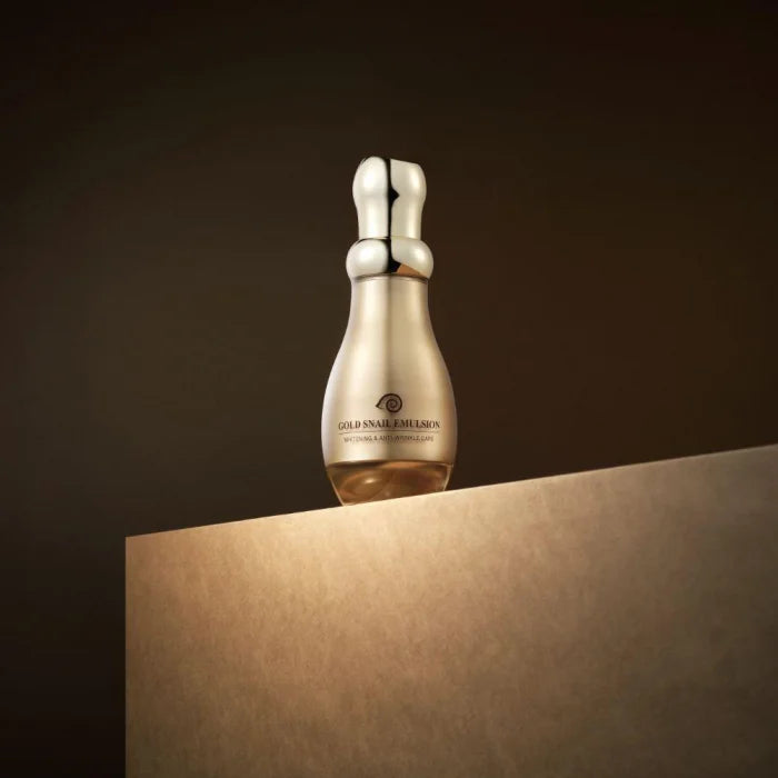 Emulsie din gama de produse coreene premium Gold Snail cu efect anti-rid pe bază de aur 24K și extract de melc