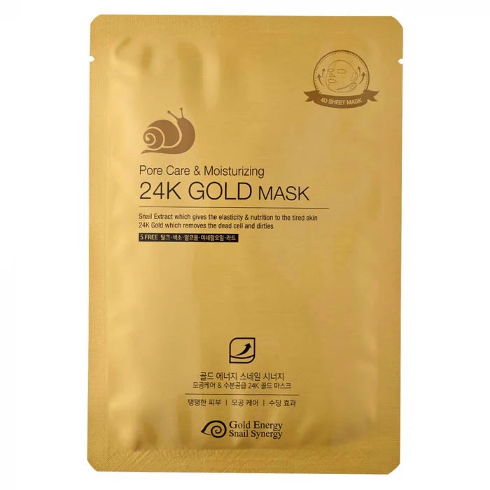 Masca de față din gama de produse coreene premium Gold Snail 24K aur și extract de melc pentru diminuarea porilor și hidratare intensă asigură următoarele beneficii:
